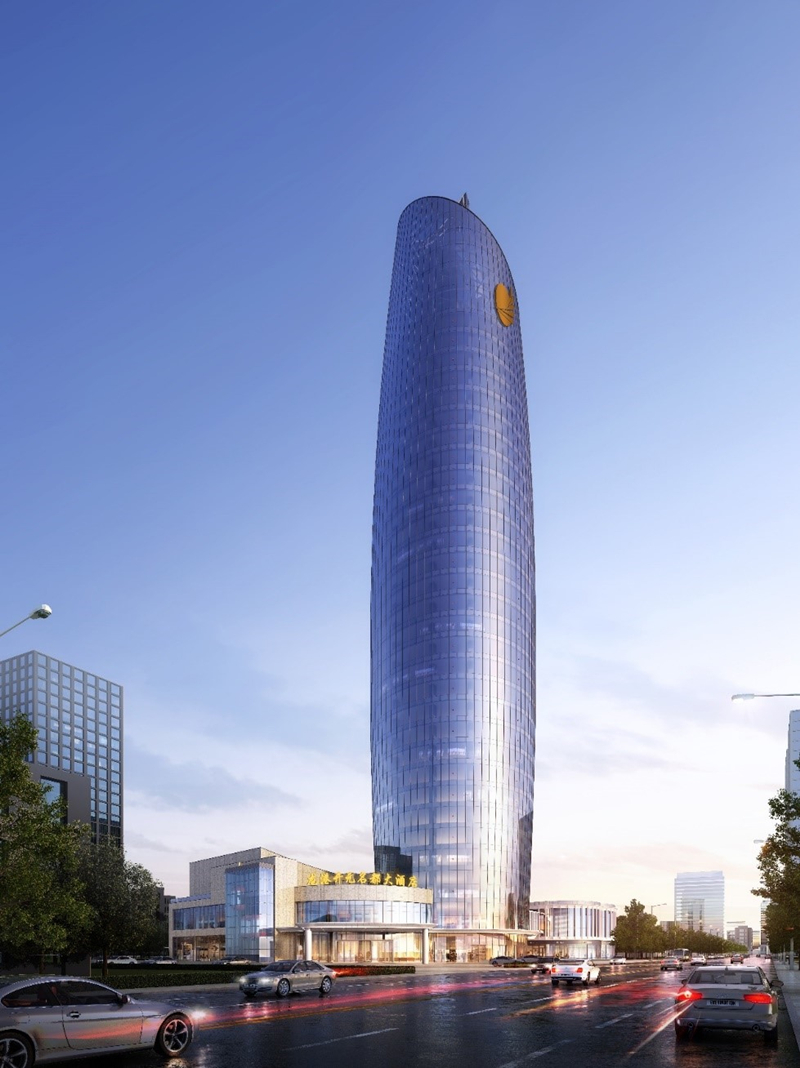 中國電建大灣區科創中心基地位于廣東省廣州市花都區,是由中電建(廣州)城市投資發展有限公司投資開發建設。該項目幕墻形式主要包括玻璃幕墻、鋁板幕墻等,總建筑面積約為62000平方米,幕墻面積38000平方米,建筑高度為162 1米。該項目是一棟超高層辦公樓,建成后將打造成為具備總部基地的地標性建筑。海口濱海新天地商業綜合體 位于海南省??谑?,是由